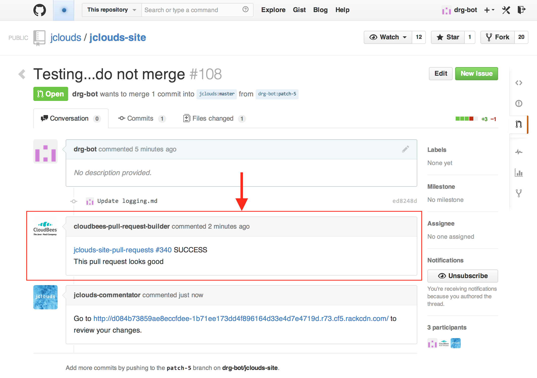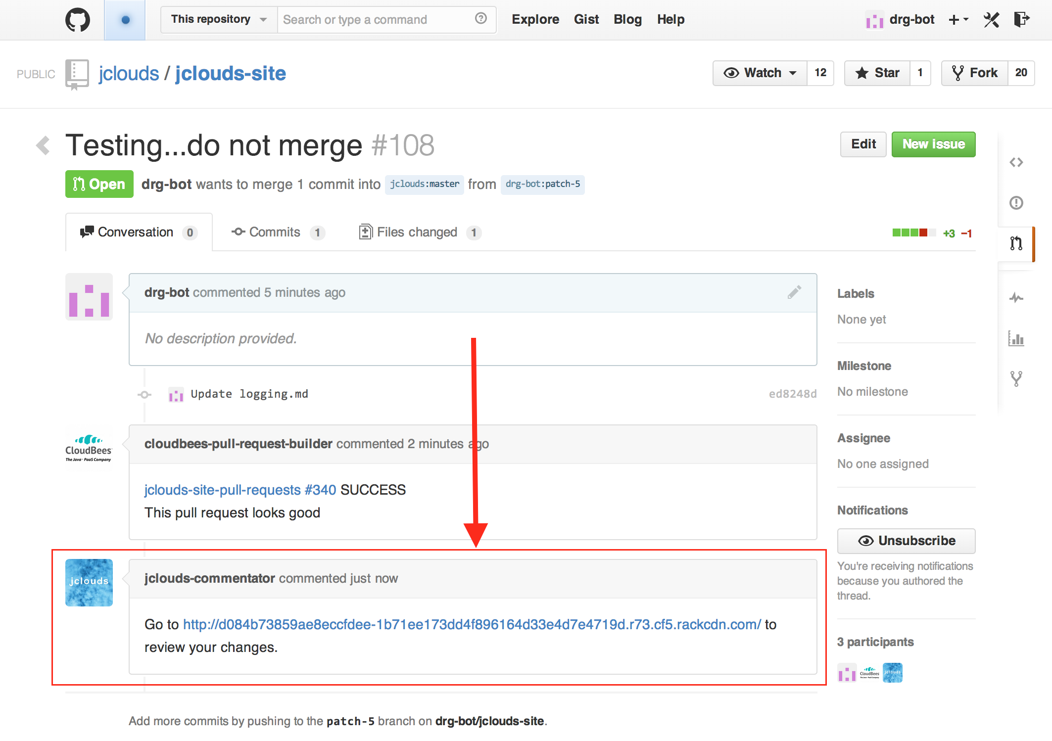 Jenkins, at the heart of the doc system, is responsible for building the website with Jekyll and uploading the staging jclouds website to Rackspace Cloud Files using jclouds. Installation and configuration of Jenkins itself is outside the scope of this post but it's relatively easy to get started using it. You need the GitHub Plugin and configure a webhook to fire when a pull request is made to your GitHub repo.